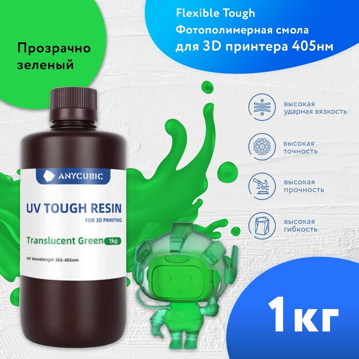 Фотополимерная смола Anycubic Tough Resin для 3D принтера, зеленая прозрачная 1л