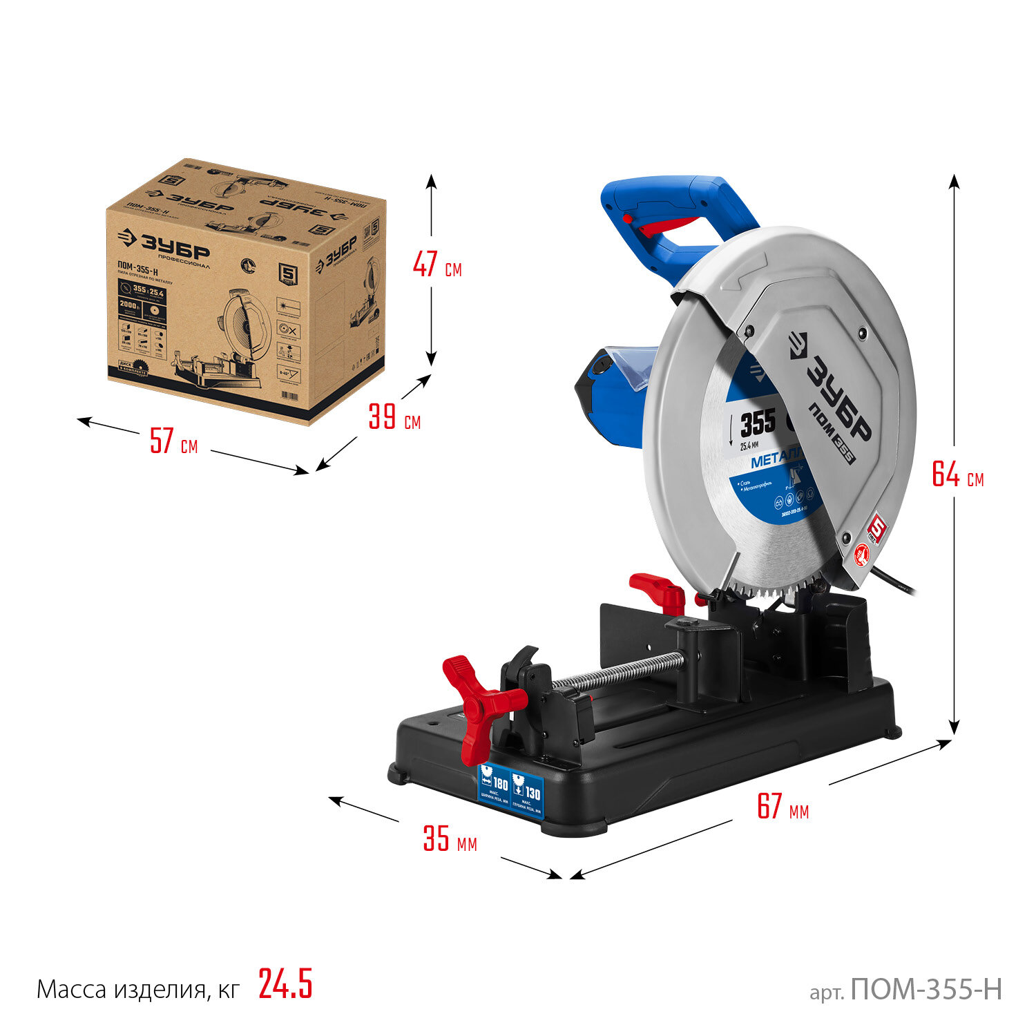 Пила отрезная (монтажная) с диском в комплекте Зубр ПОМ-355-Н серия "профессионал", ПОМ-355-Н
