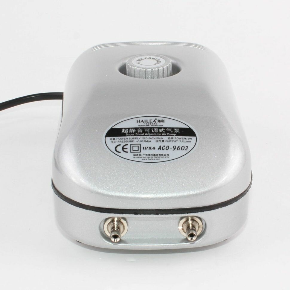 Аквариумный бесшумный компрессор HAILEA ACO-9610 с регулятором потока воздуха. Для коптилен, аквариума и пр.
