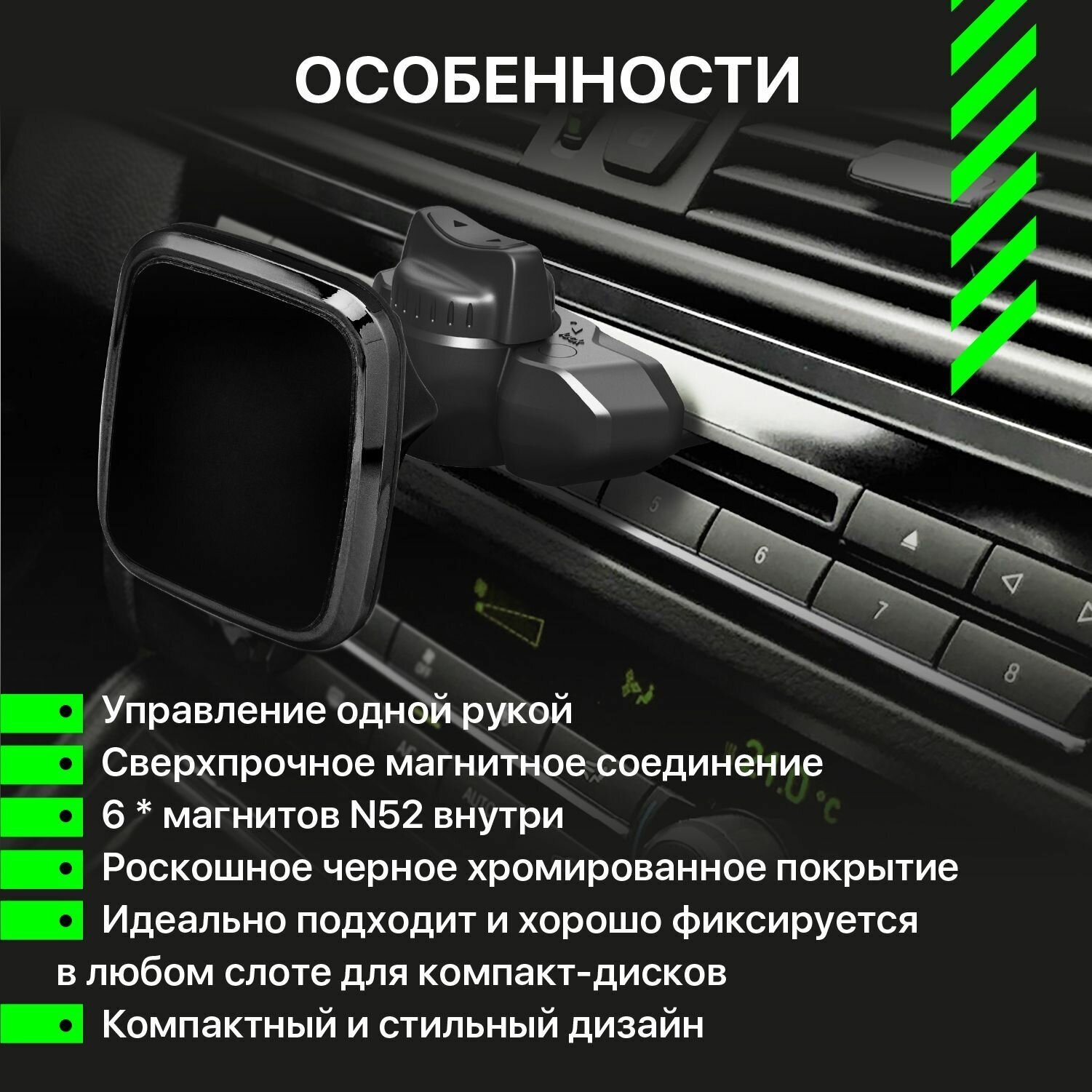 Отзывы на Держатель для телефона Dorten CD BH4 в автомобиль магнитный: RACE series - черный