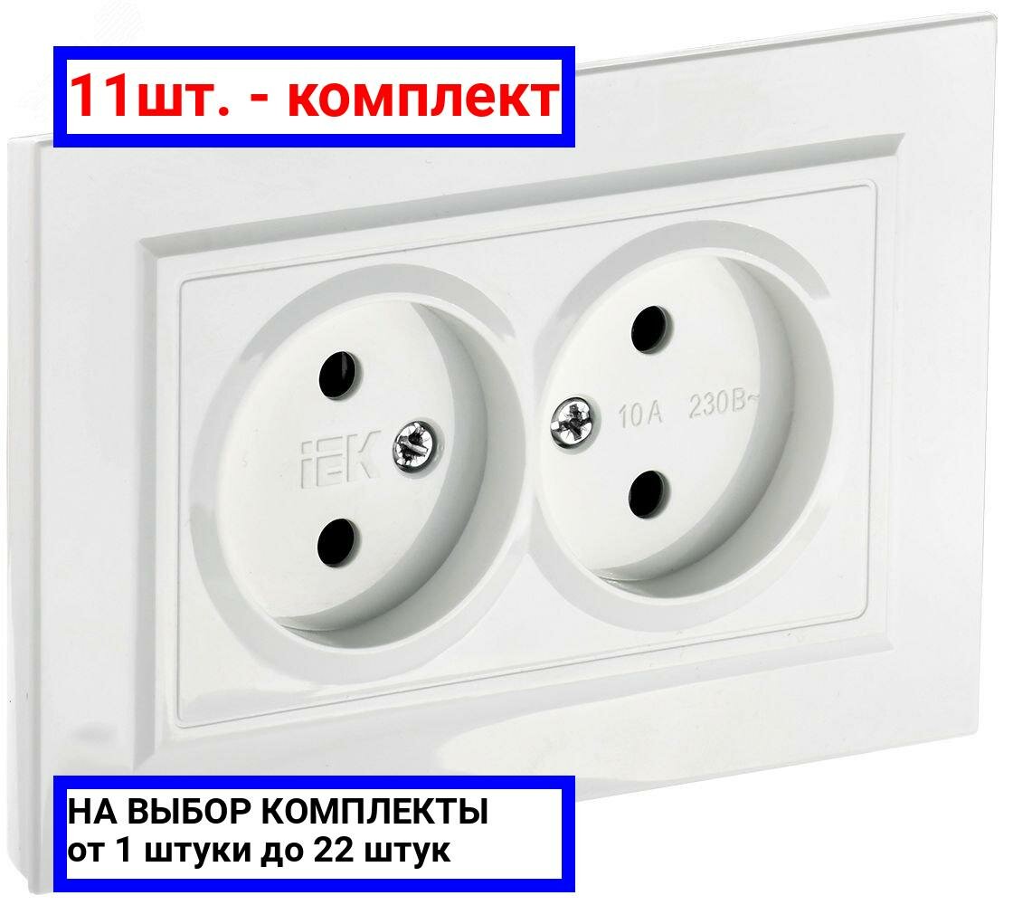 10 цен на 11шт. - BRITE Розетка двойная без заземления без защитных шторок 10А в сборе РС12-2-БрБ белый / IEK; арт. BR-R20-10-K01-F; оригинал / - комплект 11шт