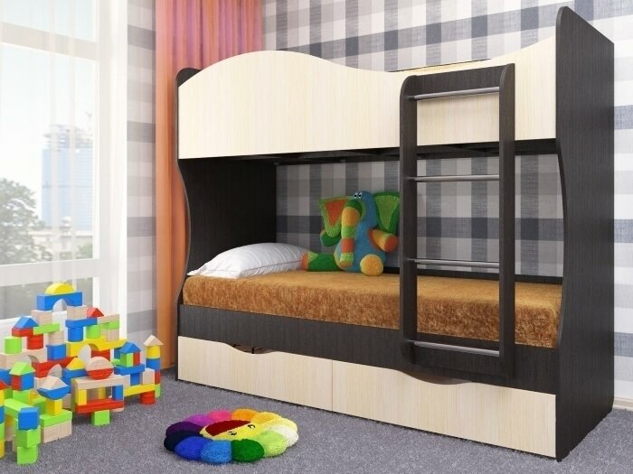 10 цен на Двухъярусная кровать с ящиками Кузя 200*80 Венге-Дуб молочный