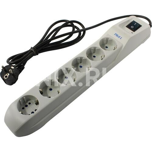 Сетевой фильтр Pilot L 3 метра 6 розеток (5 Евро + 1 GP двойная розетка стандарта Gadget Parking) светло-серый (172)