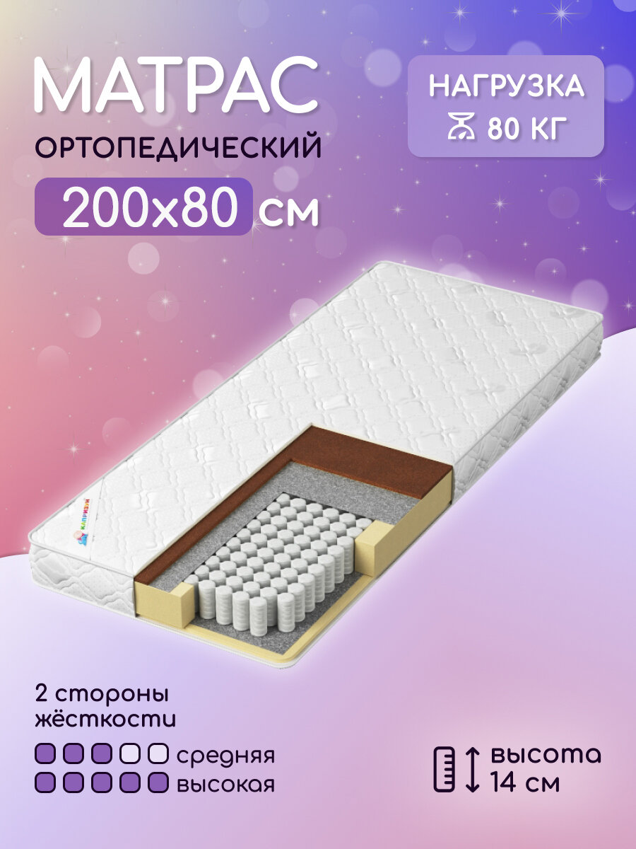 Матрас 200 на 80 см на 14 см - пружинный блок 512 на место - две стороны жесткости - Капризун Микс Хард