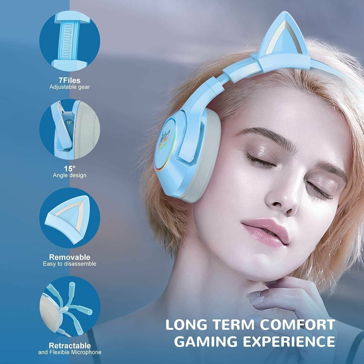 Отзывы на Игровые наушники с подсветкой ONIKUMA K9, игровая гарнитура со съемными ушками, голубые