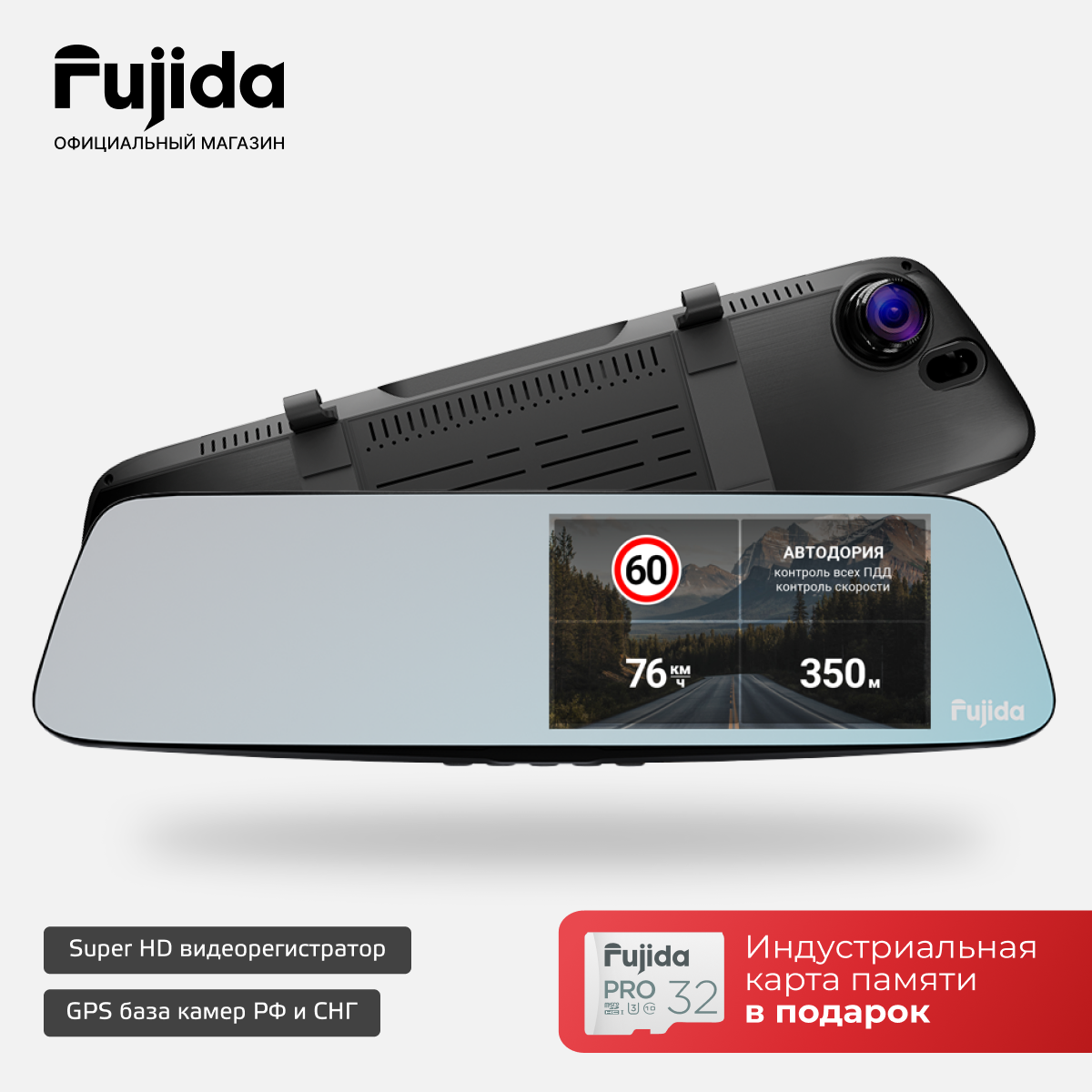 Видеорегистратор зеркало для автомобиля Fujida Zoom Blik S WiFi с GPS-информатором и WiFi-модулем информация: