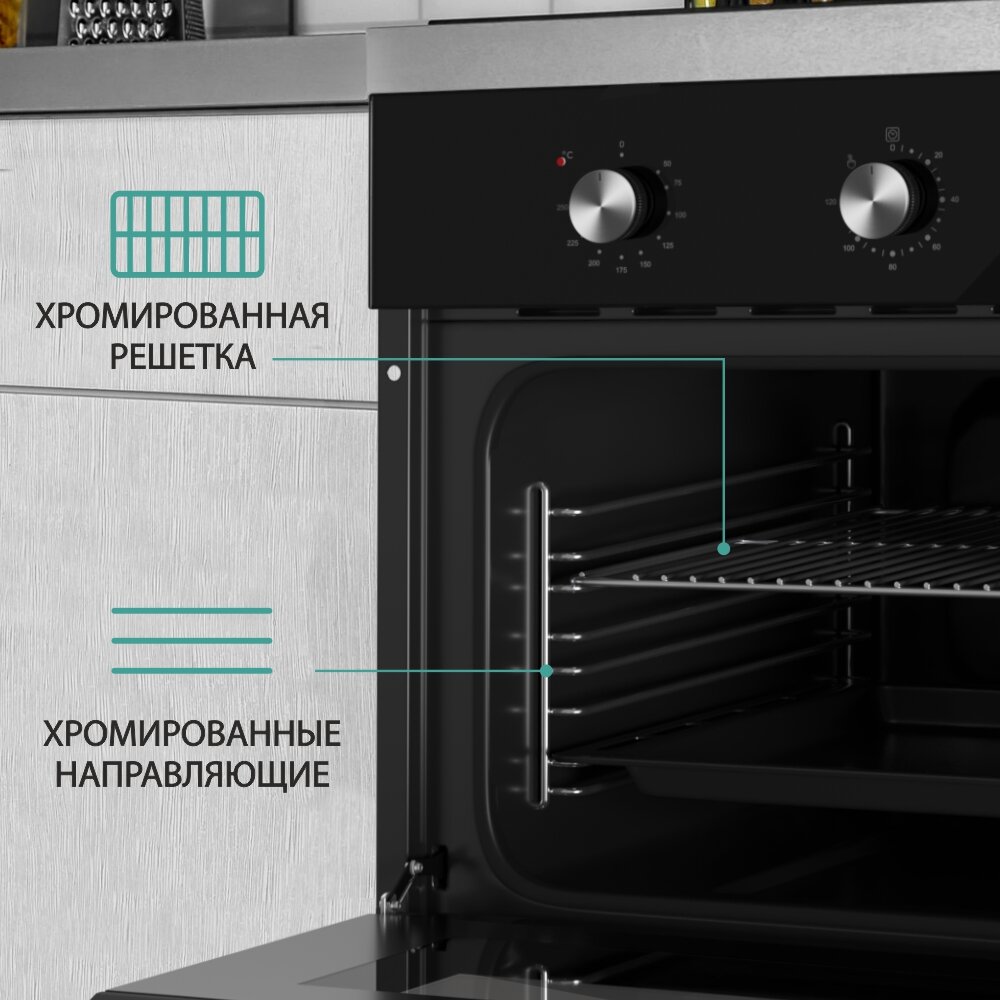Духовой шкаф встраиваемый LEX EDM 077 C IV, 60 см, с конвекцией, механические ручки, объем 60 л, аналоговый таймер, телескопические направляющие.