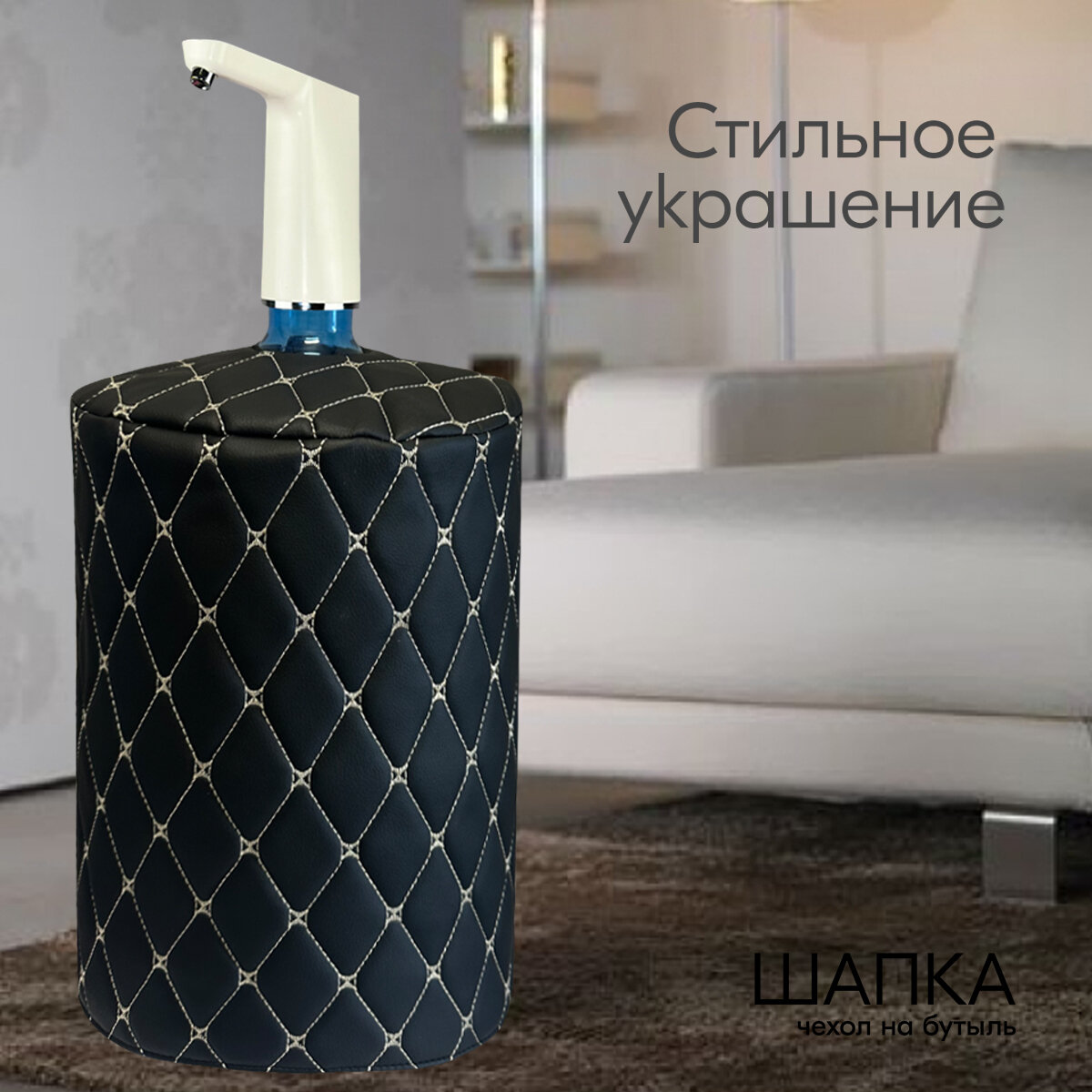 10 цен на Чехол на бутыль 19л шапка под помпу Черный Экокожа