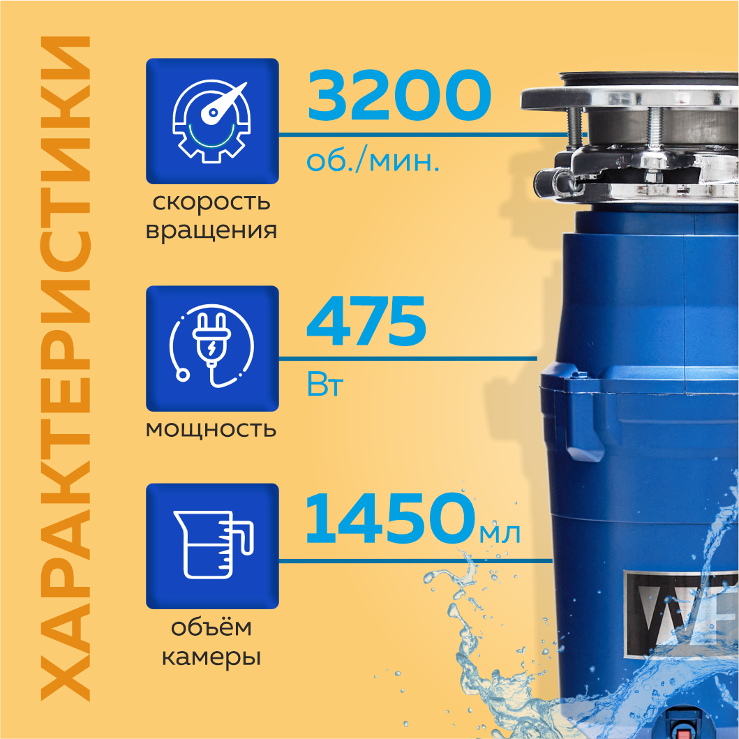 Измельчитель пищевых отходов WF F-22 Standard встраиваемый под раковину информация: