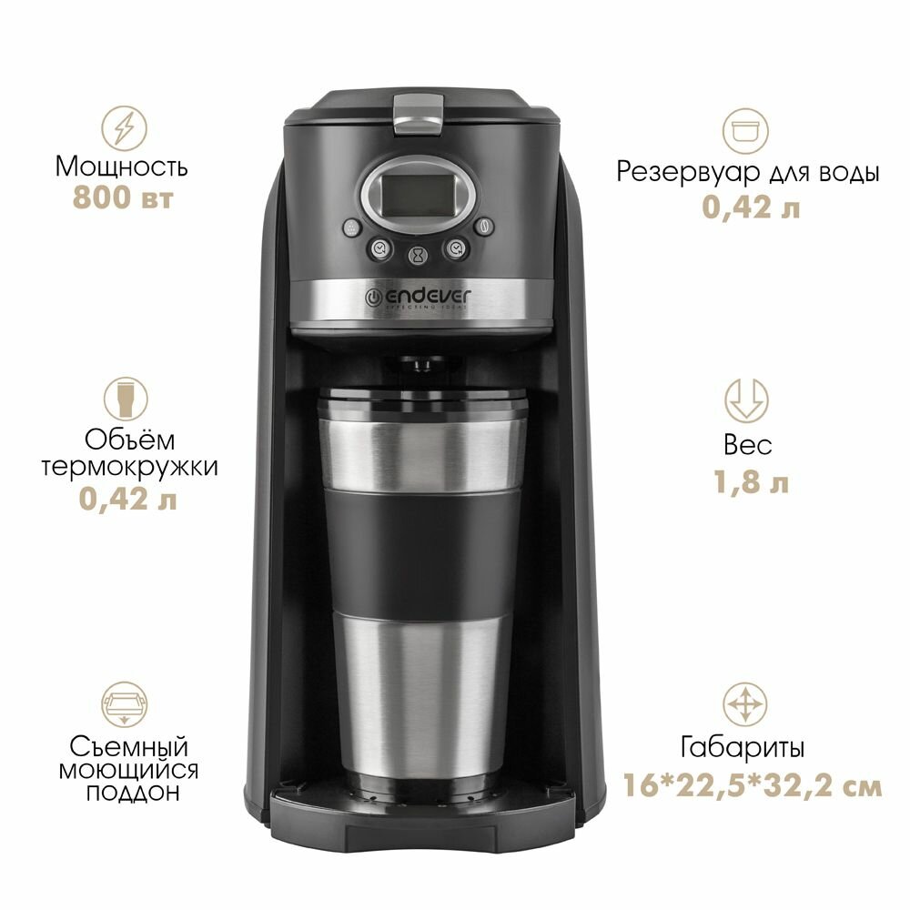 Кофеварка Endever Costa-1043, капельная, 800 Вт, 0.42 л, тёмно-серая информация: