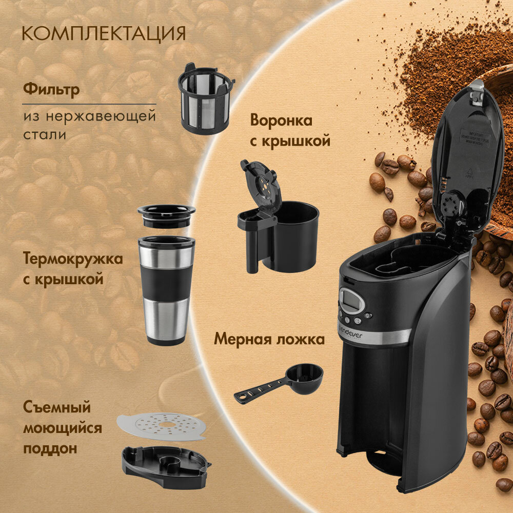| Дополнительная информация | Термокружка с крышкой, ёмкость контейнера для кофе 20 грамм. |