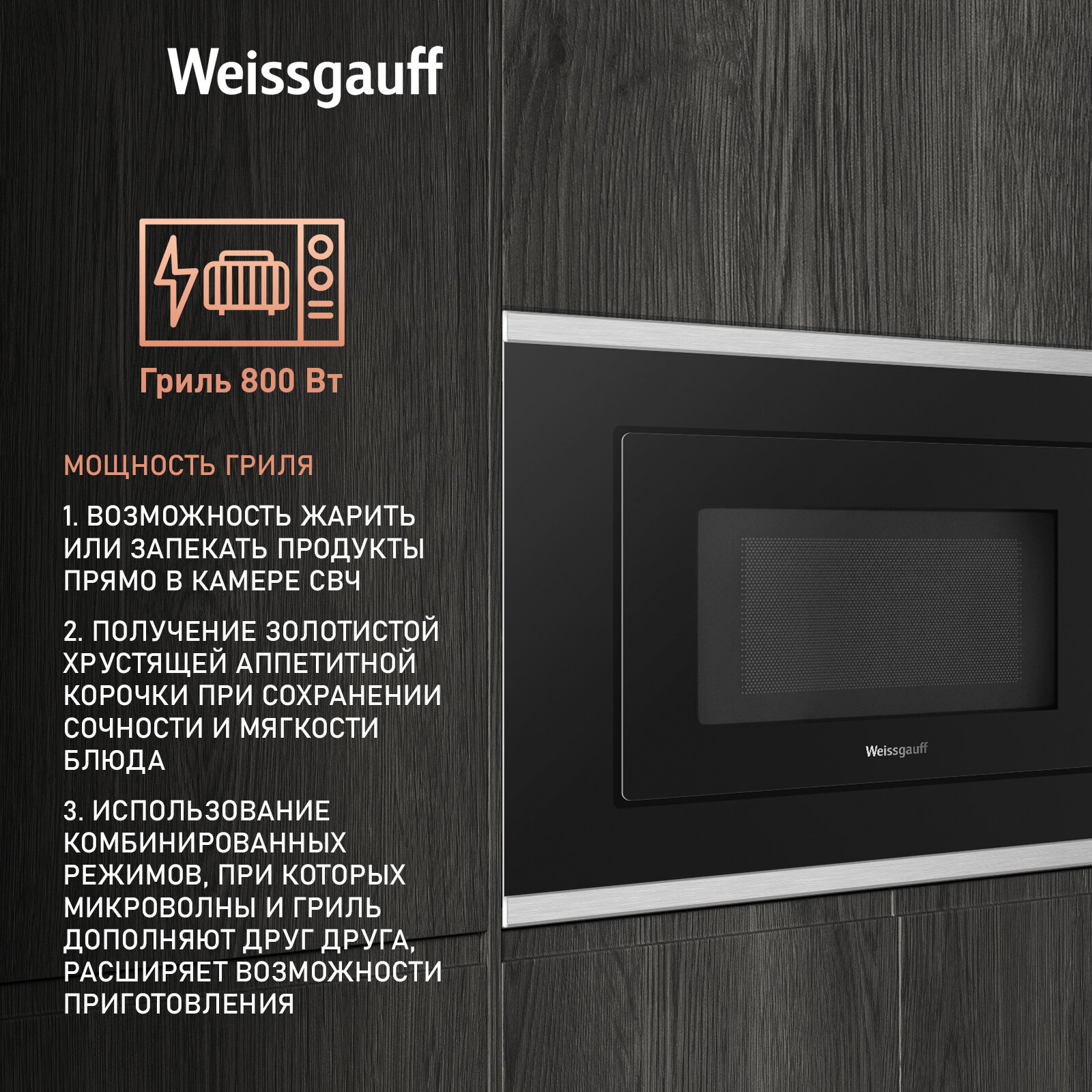 Встраиваемая микроволновая печь Weissgauff HMT-2017 Grill 3 года гарантии, объем 20 литров, гриль, разморозка по весу информация: