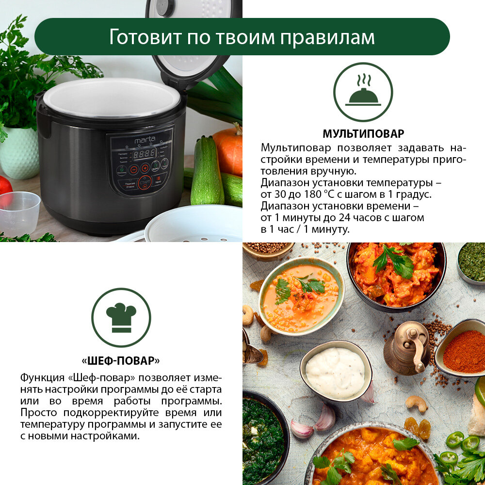 Мультиварка MARTA MT-4324 CK2 GREBLON CERAMIC туманный нефрит информация: