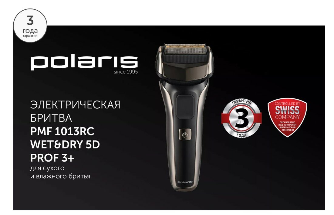 Бритва POLARIS PMF 1013RC wet&dry 5D PROF 3+, черный/серебряный информация: