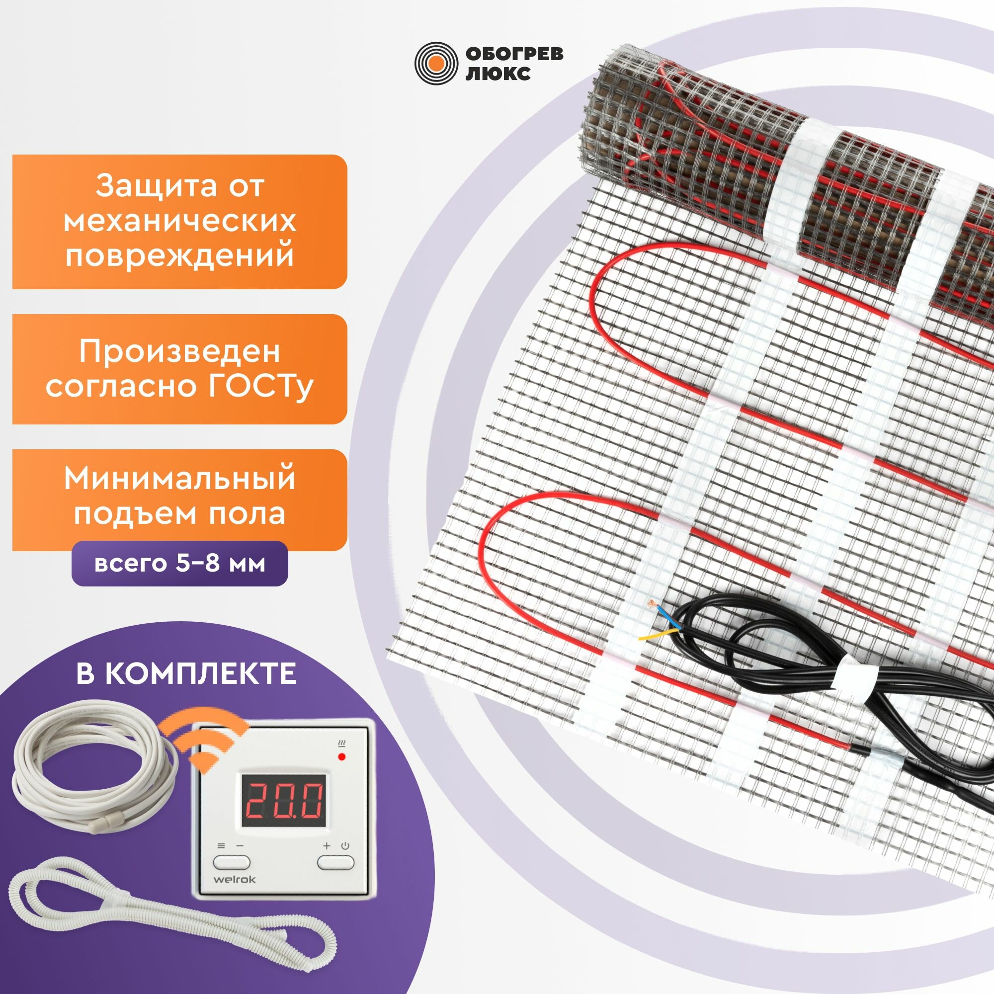 Теплый пол под плитку 0,5 м2 (нагревательный мат) с умным терморегулятором Welrok az WI-FI Обогрев Люкс информация: