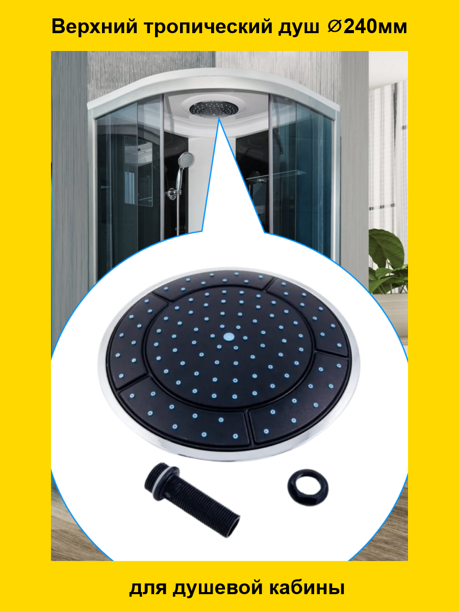 10 цен на Верхний тропический душ диаметром 240 мм для душевой кабины. Цвет лейки - черный