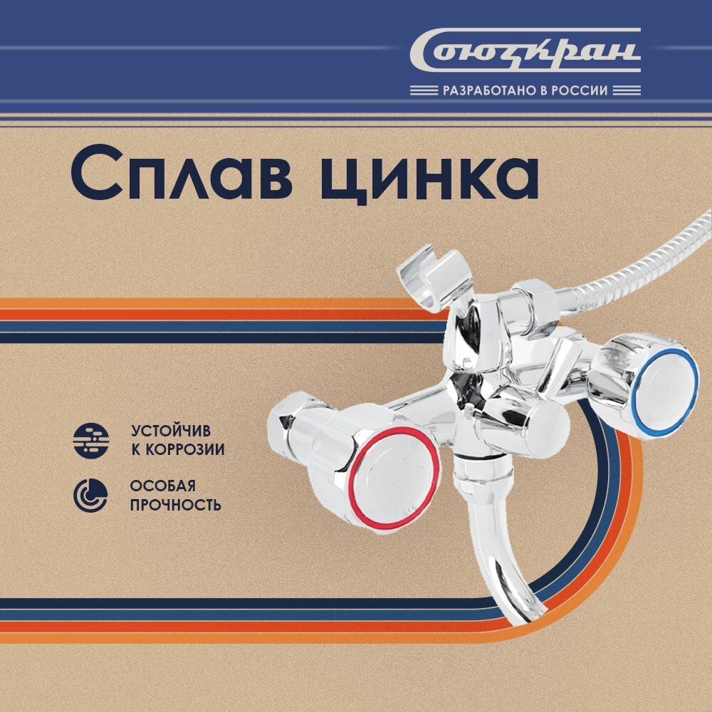 СоюзКран Смеситель для ванны с душем, круглый излив 30см, кер. кран-буксы 1/2, хром, цинк, SK08-S213 информация: