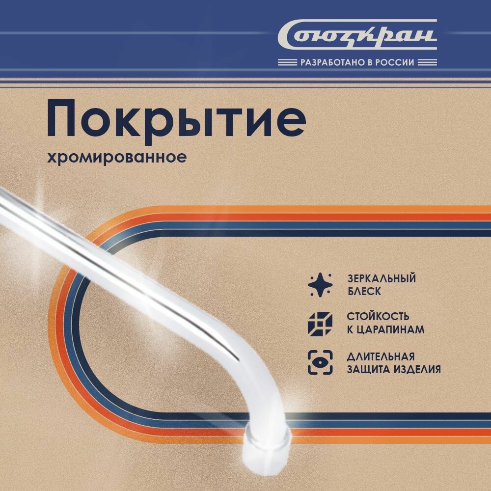 СоюзКран Смеситель для кухни, поворотный излив 25см, керам. кран-буксы 1/2, хром, цинк, SK01-G208