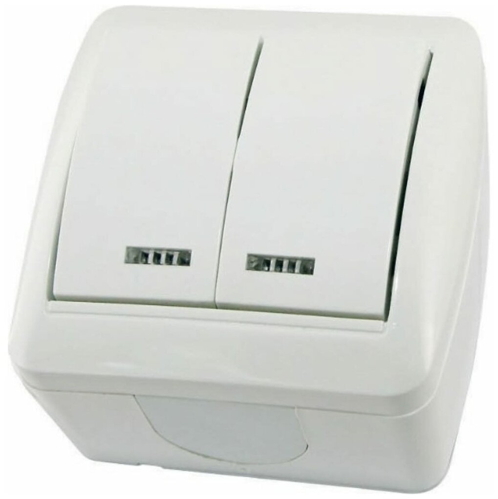 Выключатель двухклавишный Bylectrica Пралеска, брызгозащищенный, открытой установки, 6А, 250В, белый. А5 6-224.