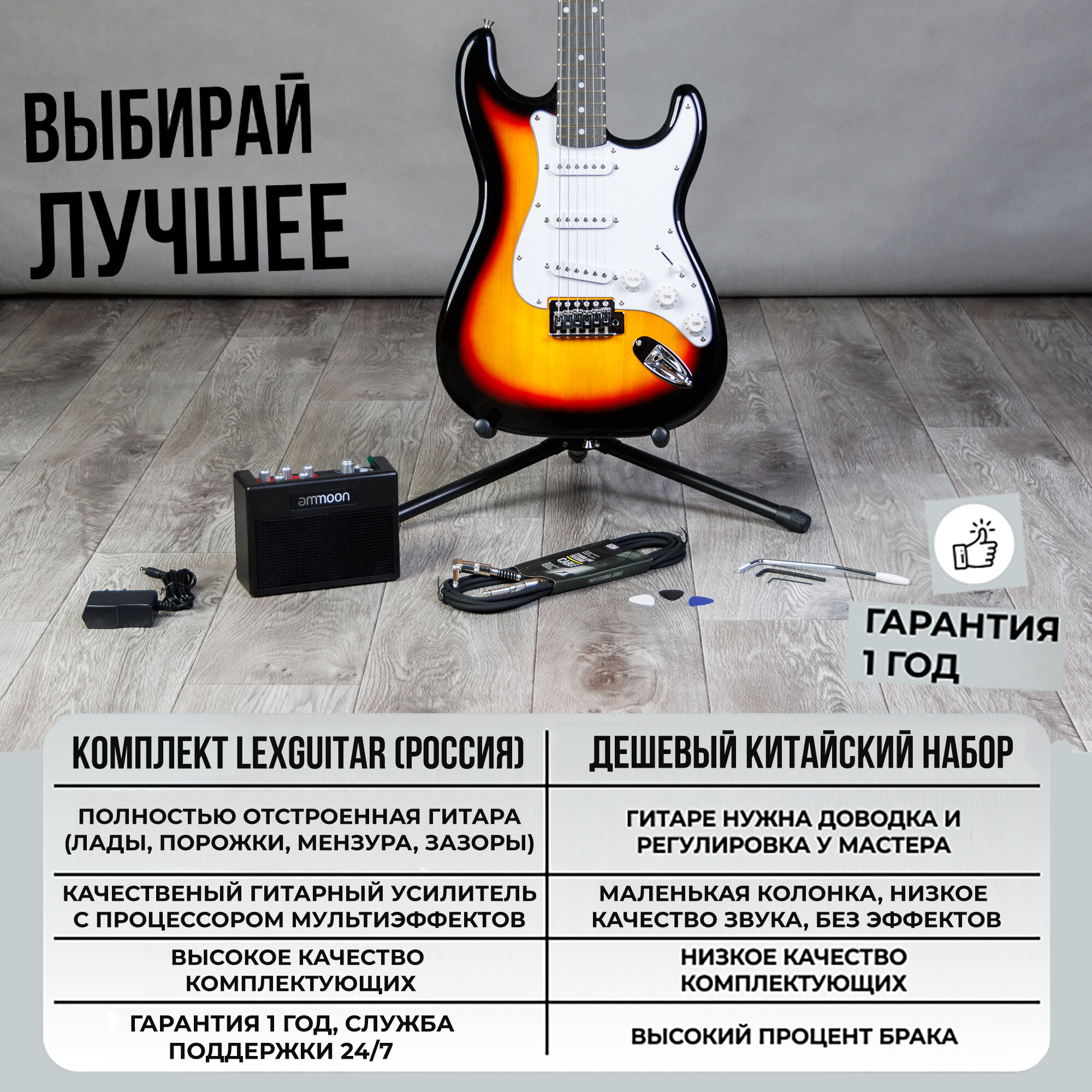 Отзывы на Набор гитариста 4 в 1 - (электрогитара, комбоусилитель, гитарный провод, медиаторы) комплект для взрослый и подростков