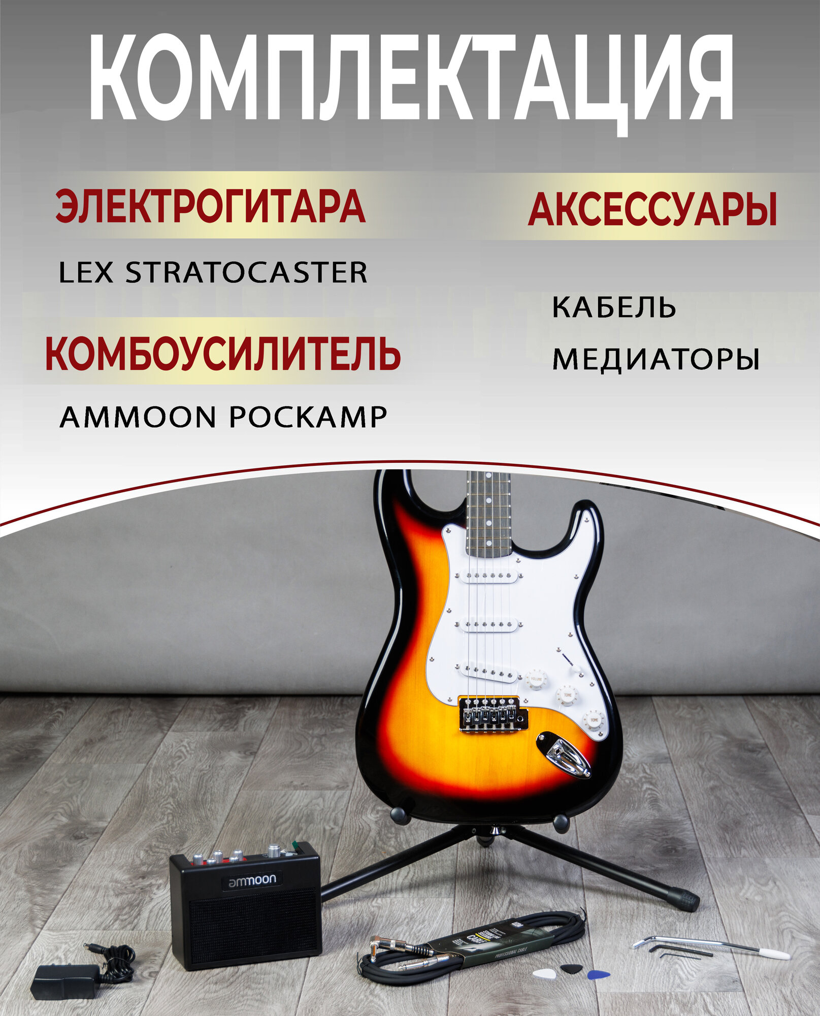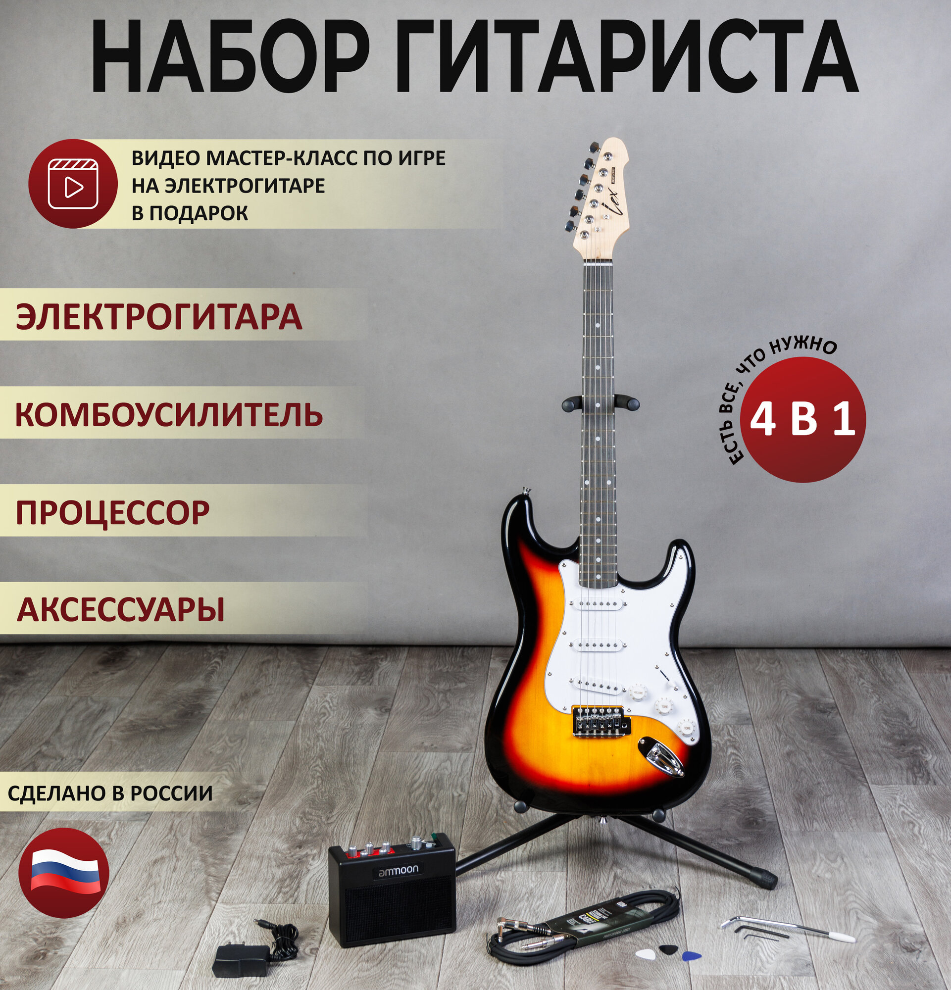 Набор гитариста 4 в 1 - (электрогитара, комбоусилитель, гитарный провод, медиаторы) комплект для взрослый и подростков информация: