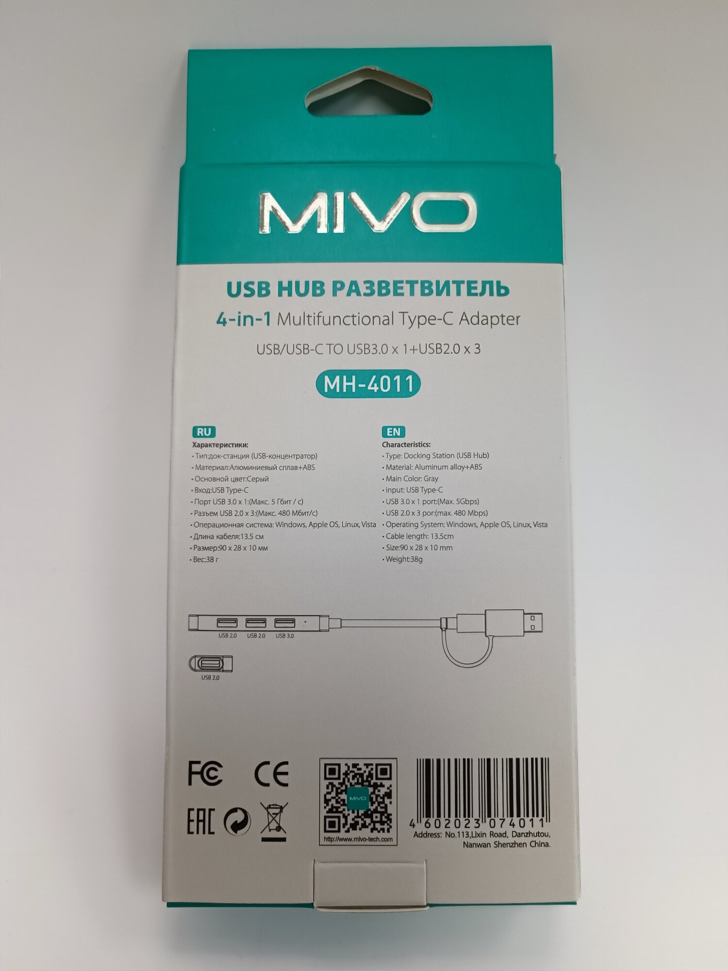 Переходник 4в1 Mivo MH-4011 USB HUB 4 in 1 информация: