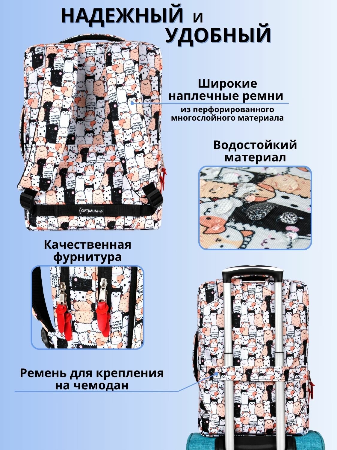| Особенности | внешний карман, возможность крепления на тележку, защита от воды, карман для телефона, отделение-органайзер |