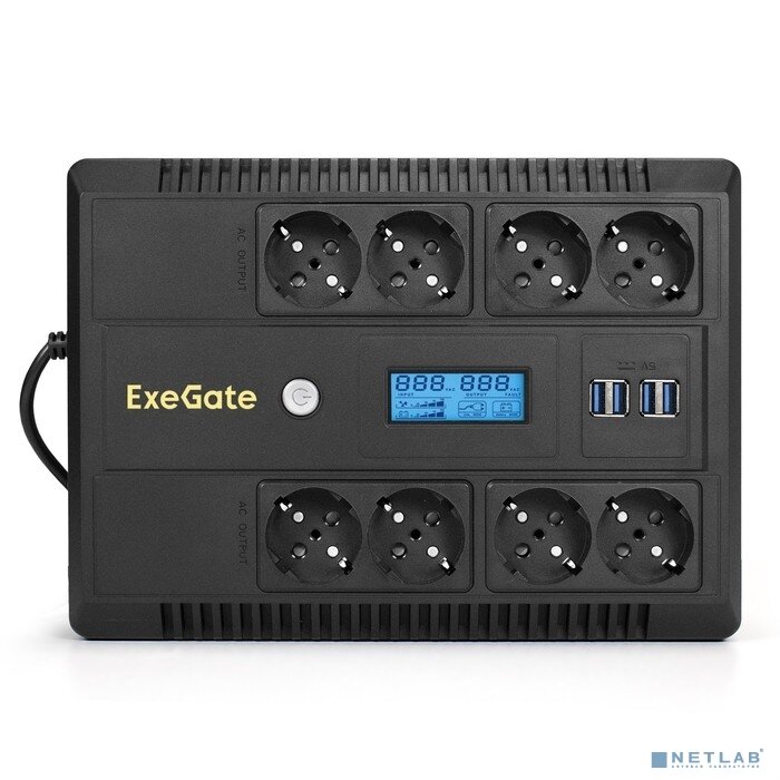 Отзывы на EXEGATE ИБП Exegate EX293858RUS ИБП ExeGate NEO Smart LHB-1000.LCD.AVR.8SH.CH.USB <1000VA/650W, LCD, AVR, 8*Schuko, USB, 4*USB-порта для зарядки, Black>