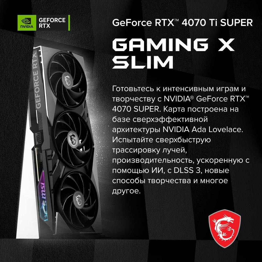 Видеокарта MSI GeForce RTX 4070 Ti SUPER 16G GAMING X SLIM, Retail информация: