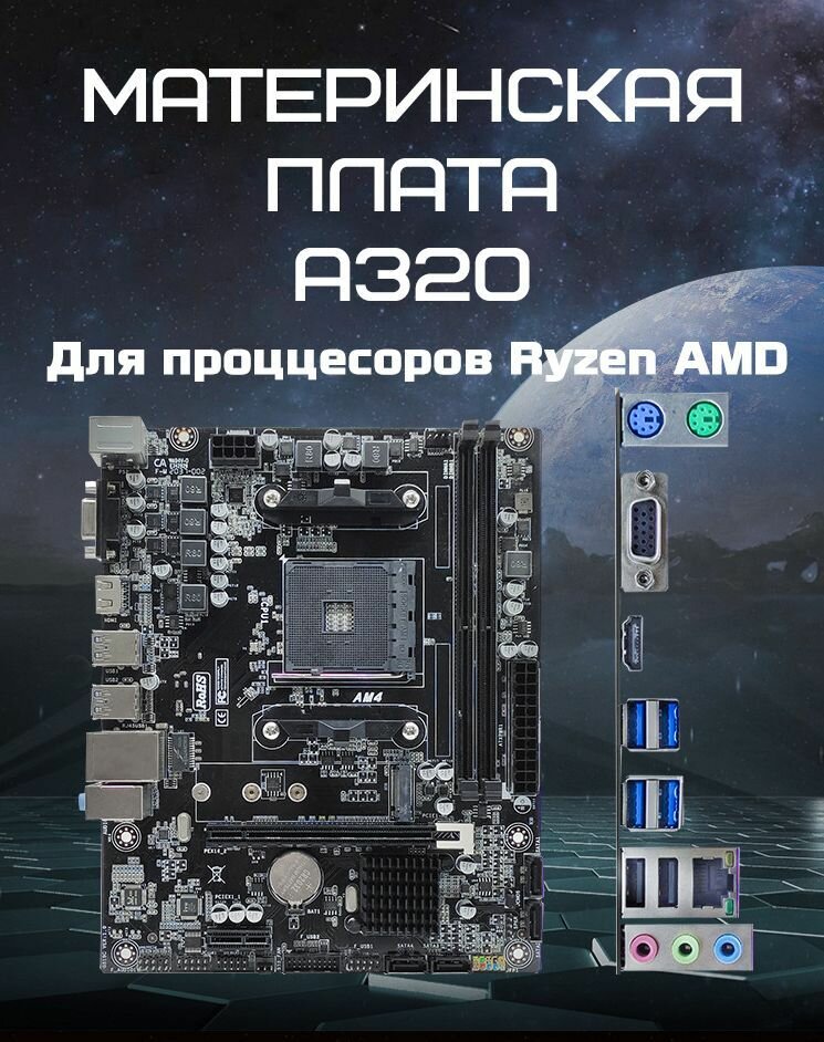 Материнская плата Micro ATX A320 AM4 AMD, DDR4 до 32 ГБ, socket AMD Ryzen 3000-5000 информация: