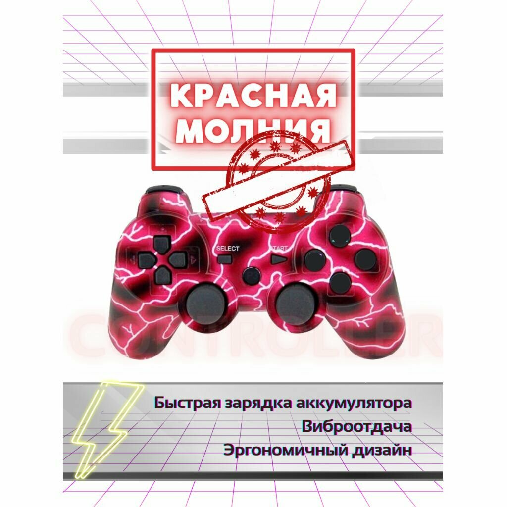 Беспроводной геймпад Dualshock 3, джойстик для игровой приставки Sony Playstation 3 и ПК, красная молния 1 299 ₽