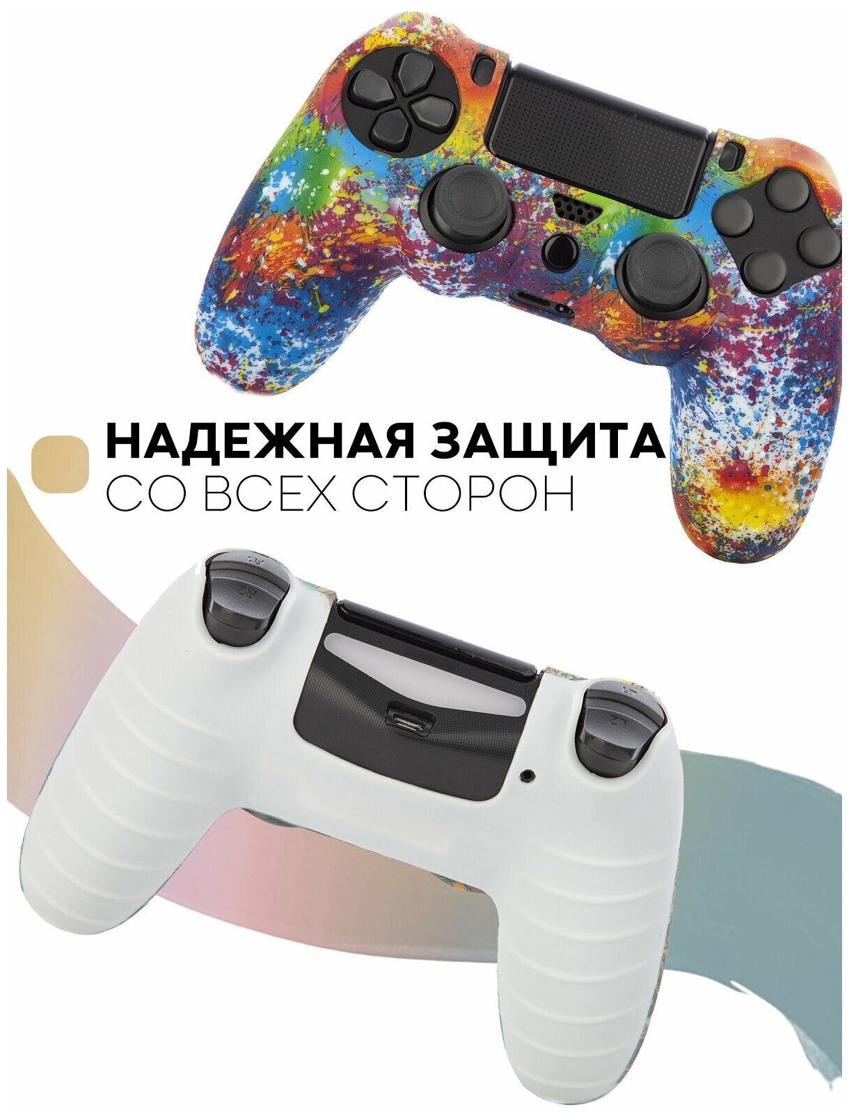 Отзывы на Защитный силиконовый чехол для геймпада Sony PlayStation 4 DualShock (матовая накладка для джойстика, контроллера PS4, Сони Плэйстэйшн 4 Дуалшок) с рисунком, кляксы