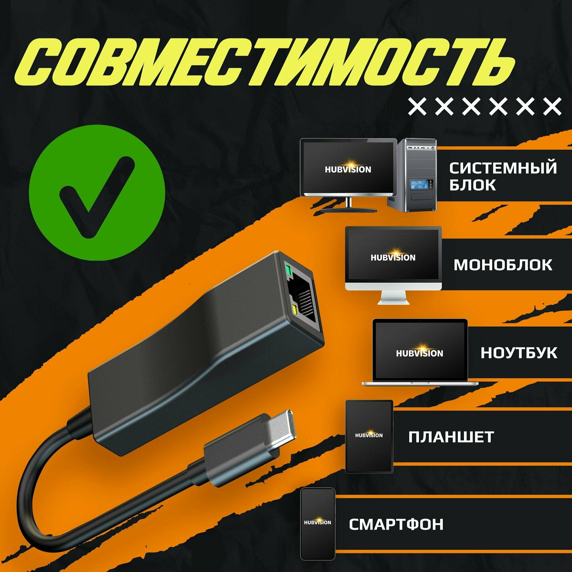 Внешняя сетевая Ethernet карта USB Type-C - LAN (RJ45), 1000 Мбит/с, адаптер - переходник для ноутбука информация: