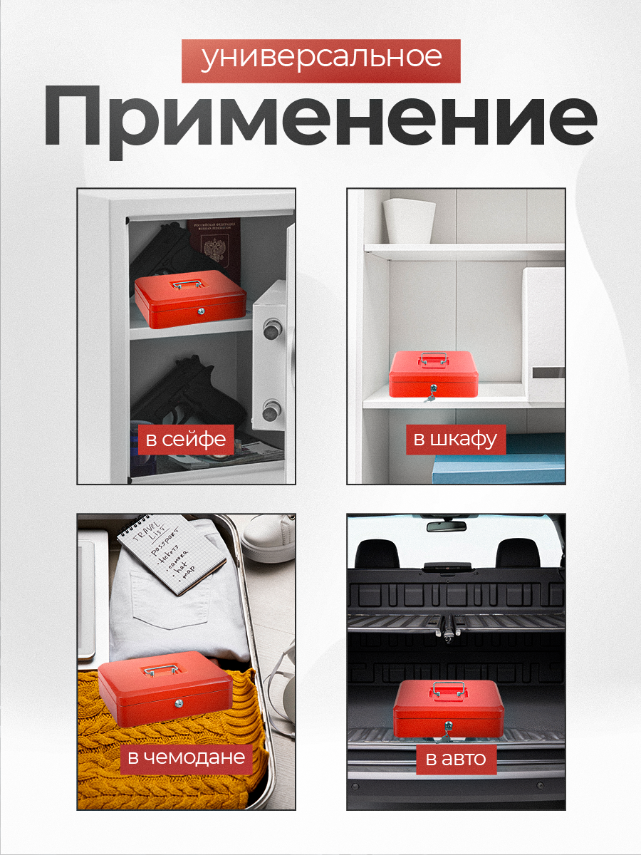 10 цен на Ящик для денег SAFEBURG Keeper-30 Red Gloss, переносной сейф/кэшбокс, лоток 9 отсеков