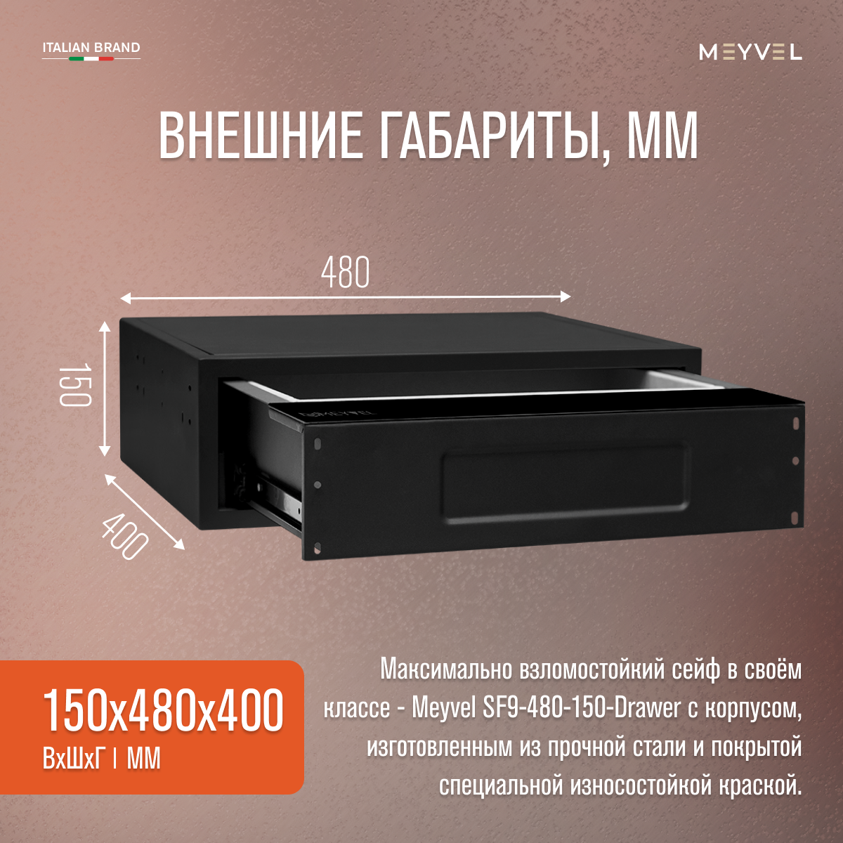 Сейф Meyvel SF9-480-150-Drawer (встраиваемый тайник с кодовым замком для дома/офиса) информация: