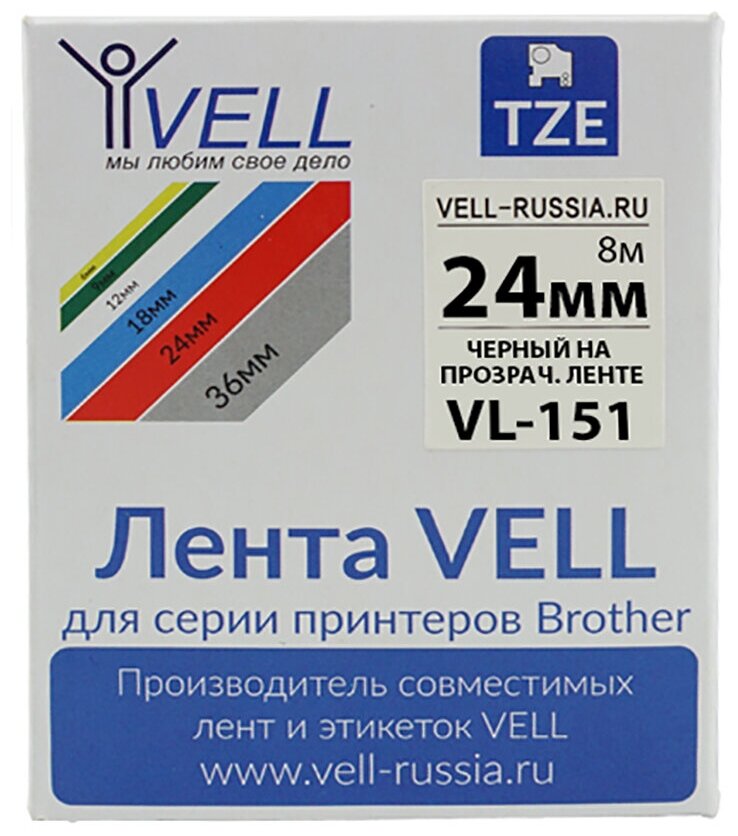 Лента Vell VL-151 (TZE-151, 24 мм, черный на прозрачном) информация: