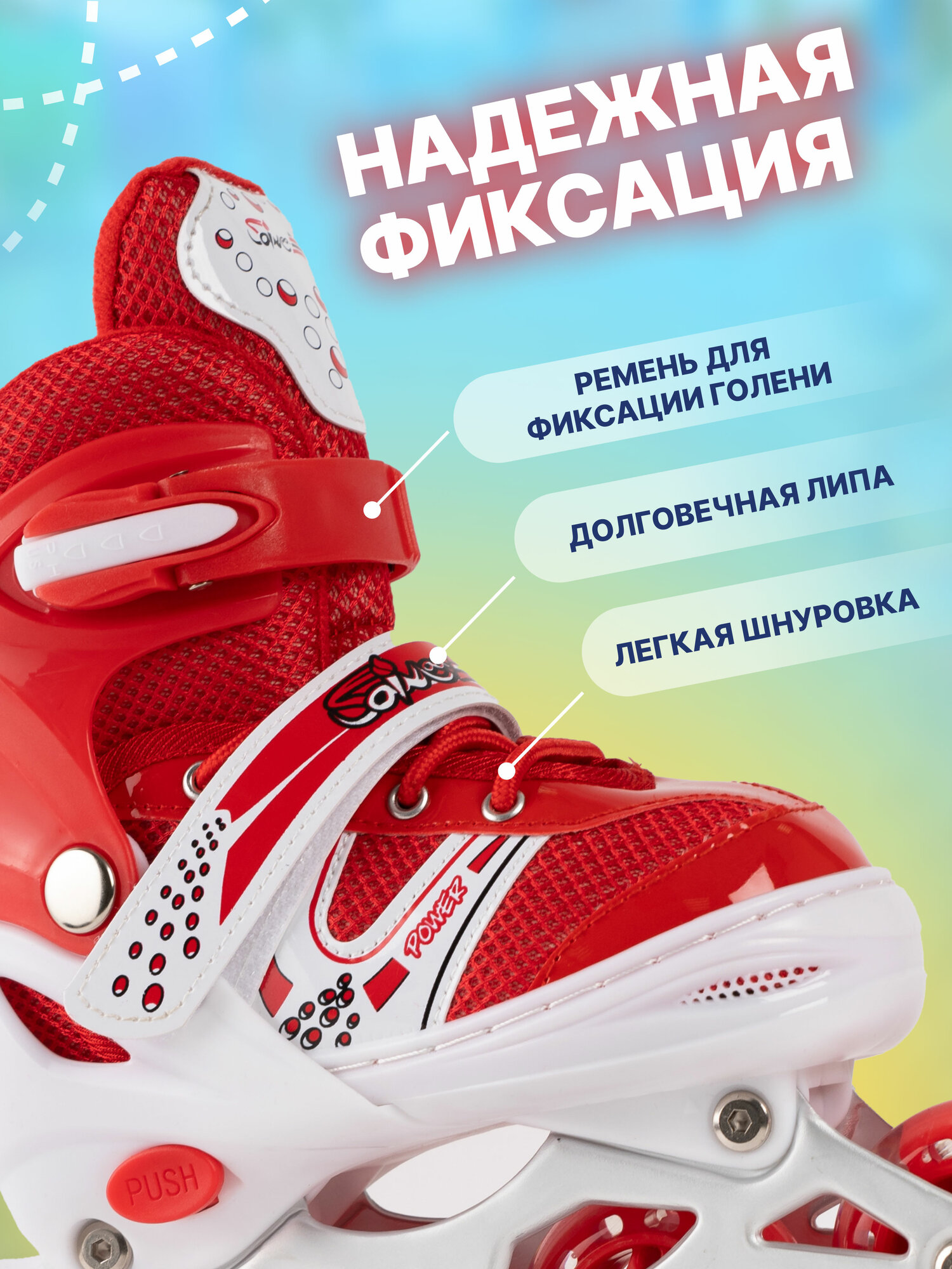 Роликовые коньки с защитой раздвижные детские, S (31-34), цвет красный информация: