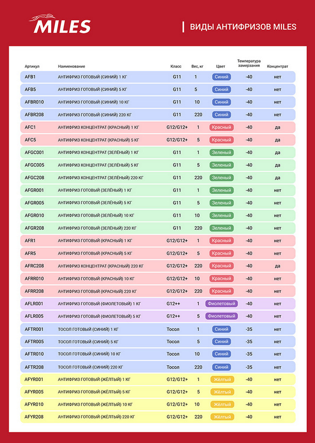 Антифриз MILES красный G12/G12+ готовый 1 кг