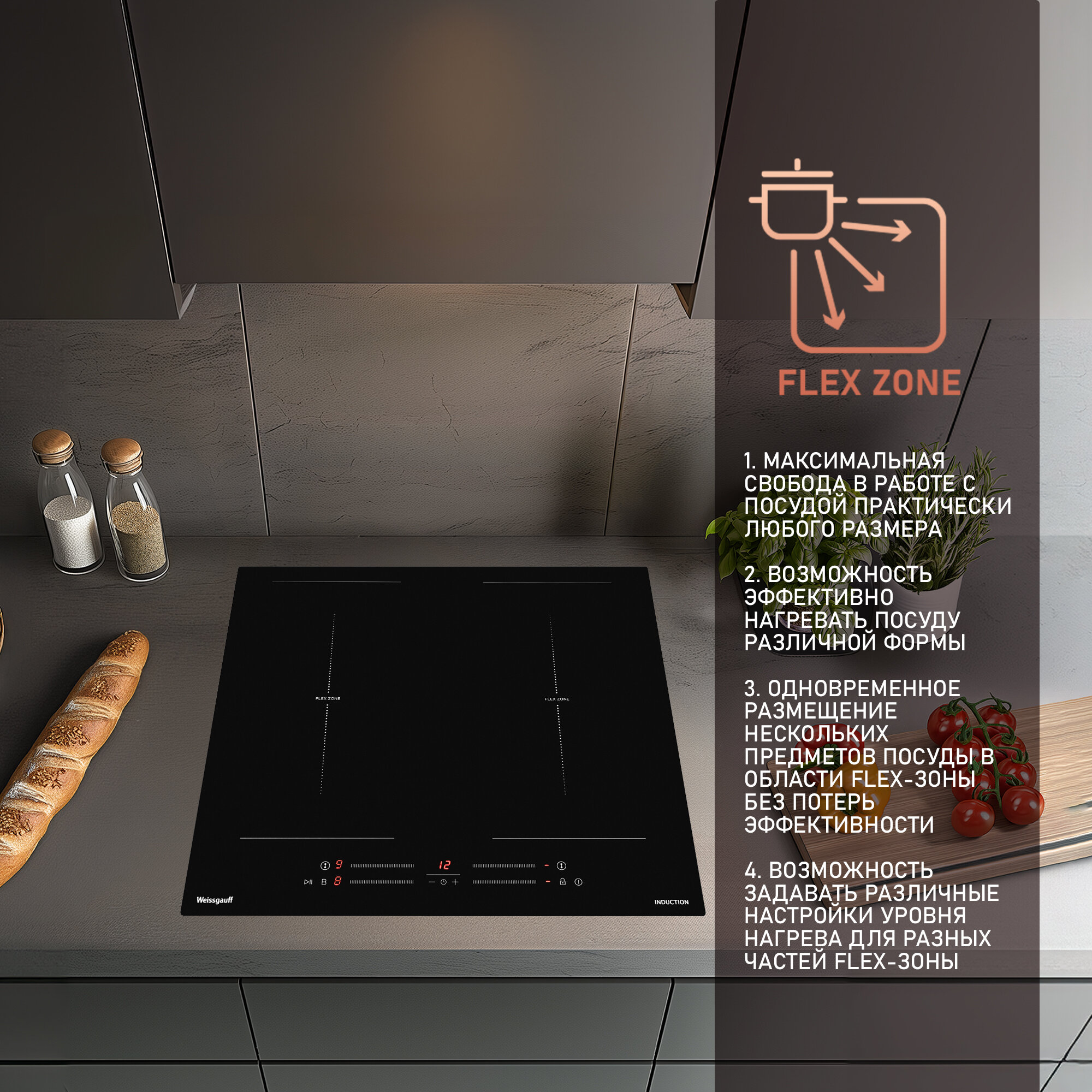 | Функции | распознавание наличия посуды / таймер / Функция Booster / функция Flex Zone |