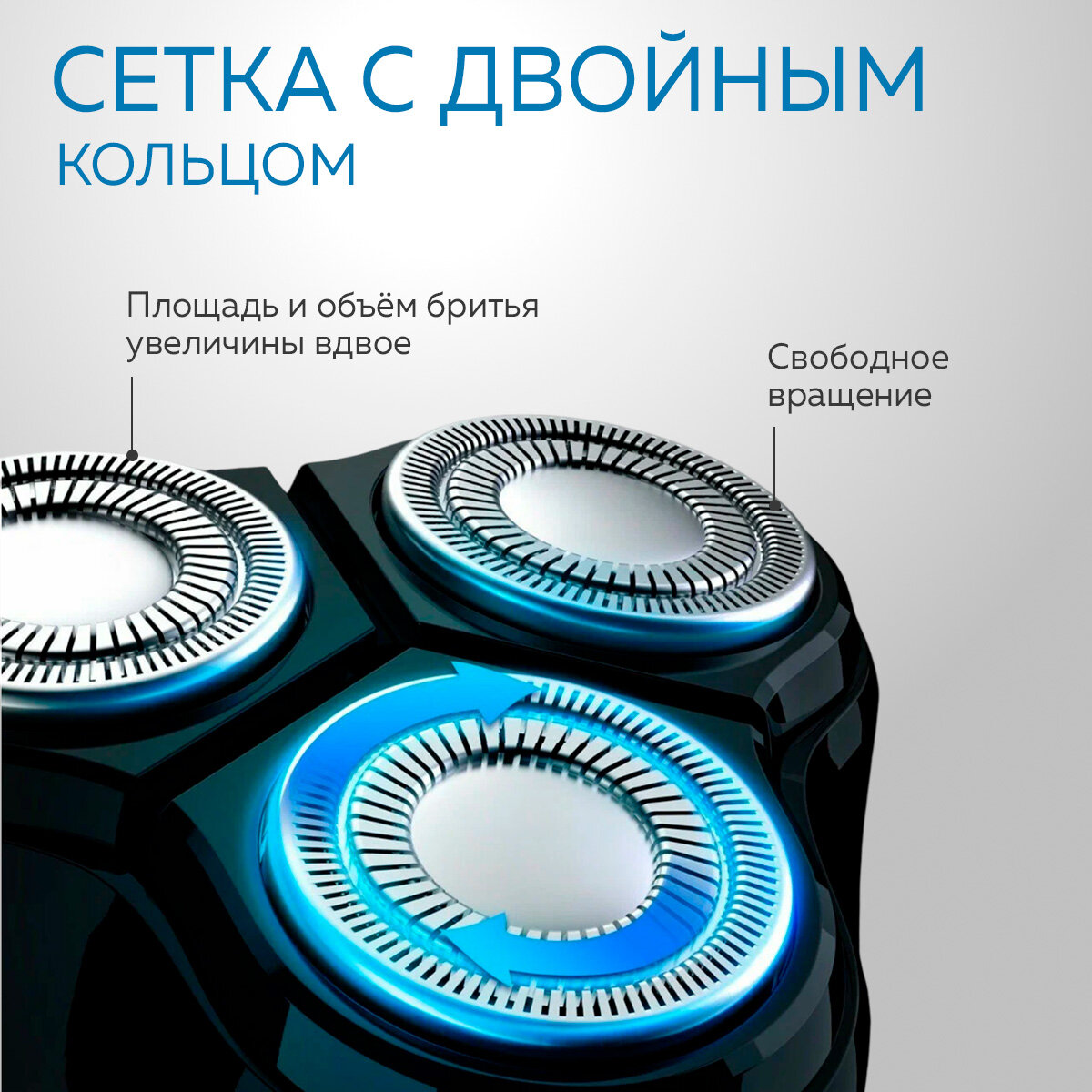 Электробритва мужская для лица Enchen BlackStone 3, роторная, 3 плавающие головки, Li-ion аккумулятор, IPX7