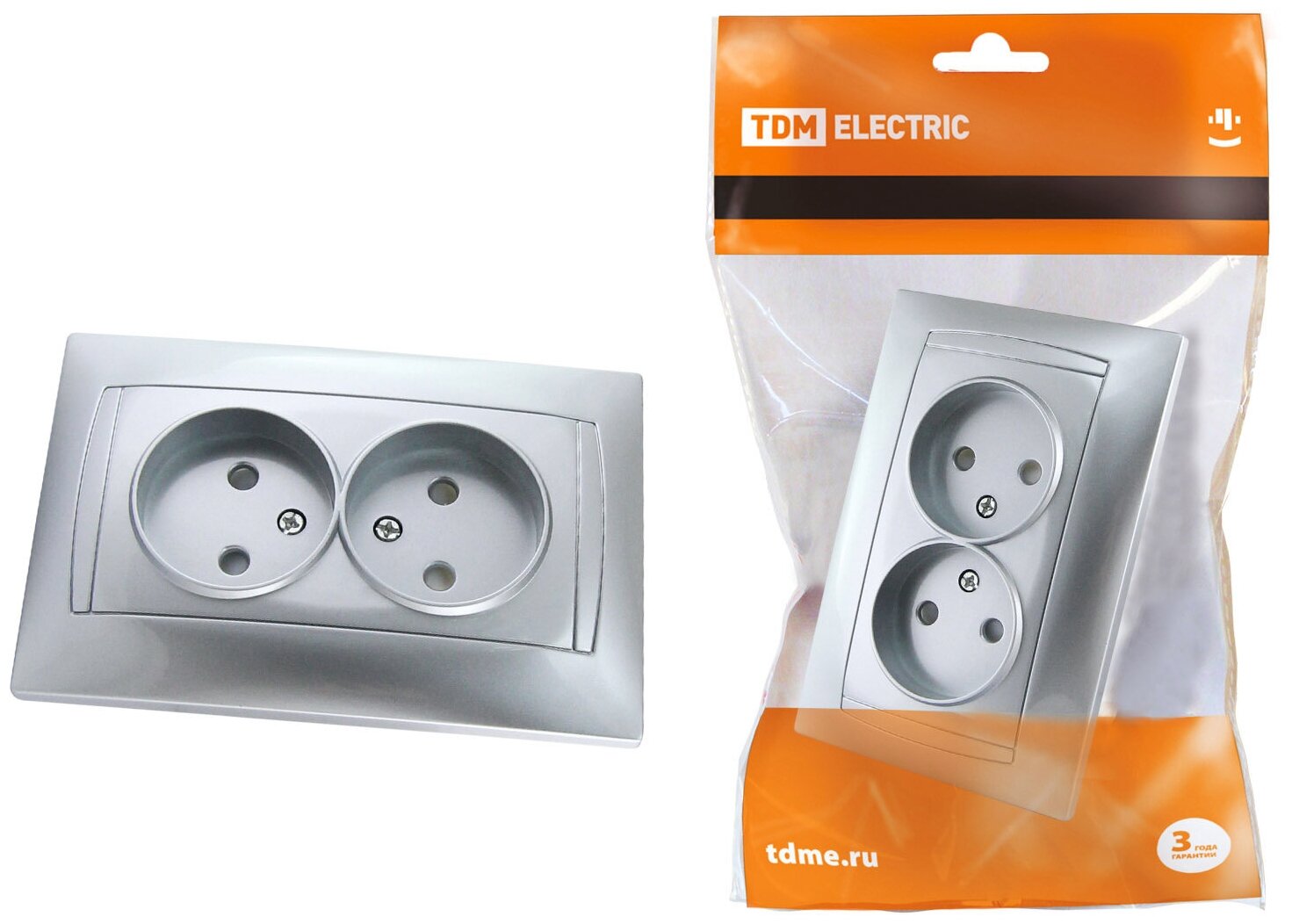Розетка TDM Electric Лама 2 гнезда, скрытая, серебристая, IP20 598 ₽