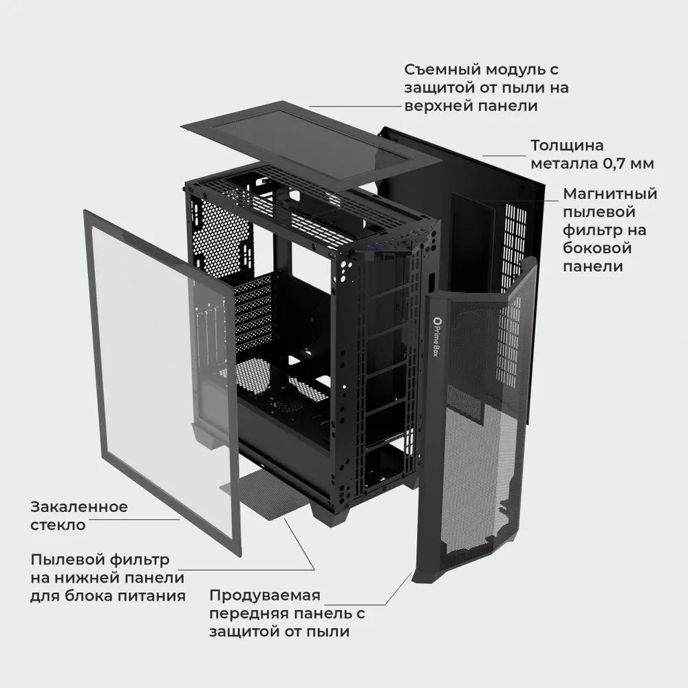 Корпус Prime Box Warrior Z16 Black + закаленное стекло, EATX, ATX, micro-ATX, mini-ITX 6 200 ₽