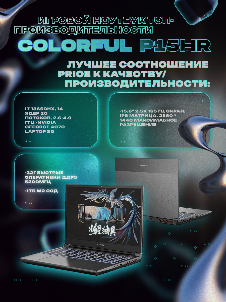 10 цен на 15.6" Игровой ноутбук топ-производительности, Colorful P15, QHD,165Hz, IPS/i7-13650HX/RTX4070L/32G DDR5/1TB SSD/синий/богатый комплект(крутые аксессуары+коврик)