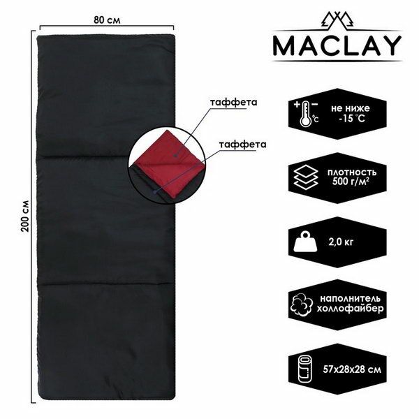 Maclay Спальник-одеяло, 200 х 80 см, до -15 °C