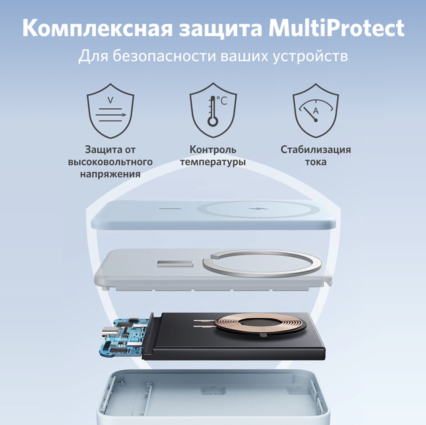 | Дополнительная информация | эксклюзивная технология безопасности MultiProtect, сверхпрочный магнит, питание от сети 220 В, технология Mini Cell, зарядки аккумулятора. С внешней стороны устройства расположена складная подставка. Совместимость: универсальный, смартфоны Apple с технологией MagSafe |