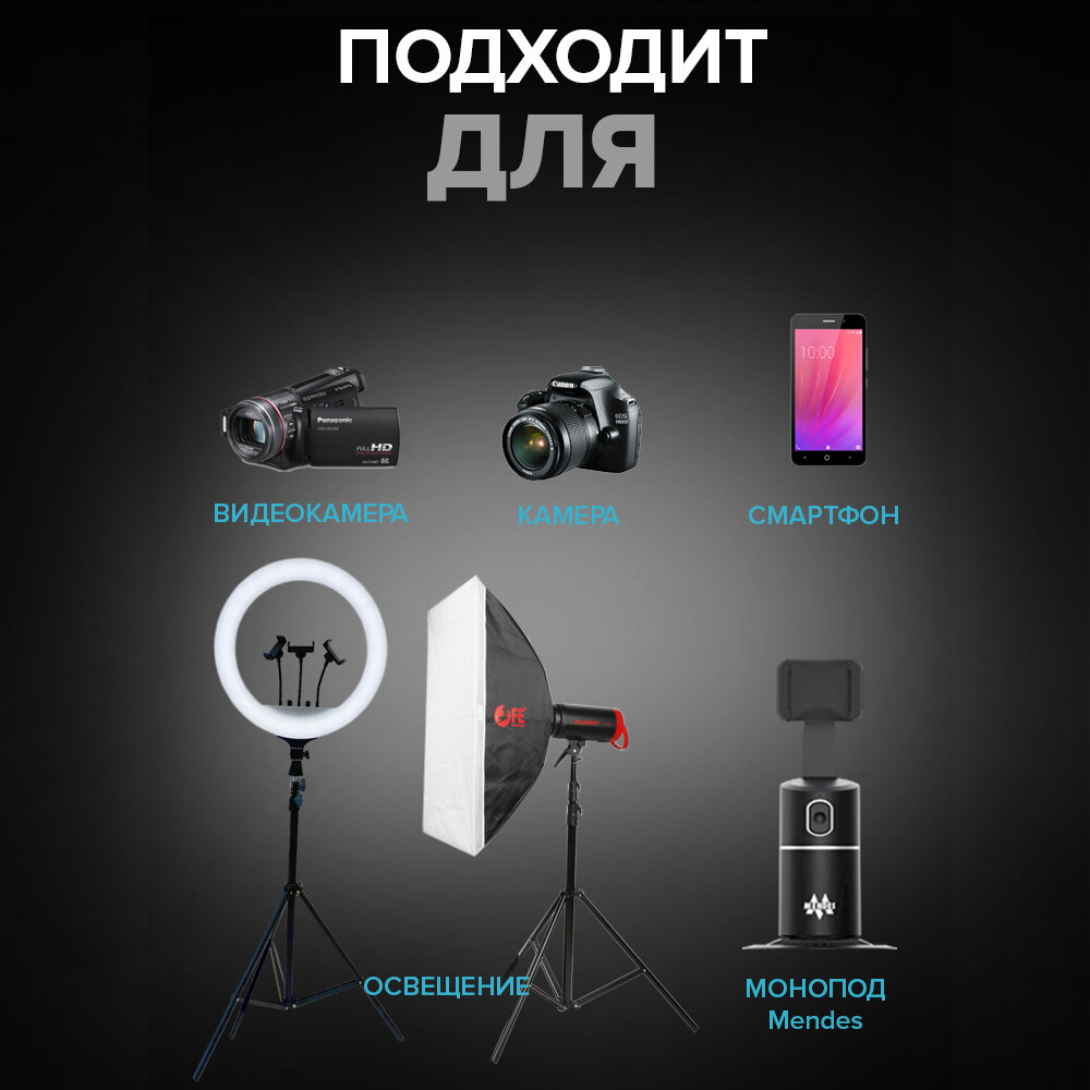 | Дополнительная информация | Подходит для кольцевых ламп, смартфона, фото и видеотехники |