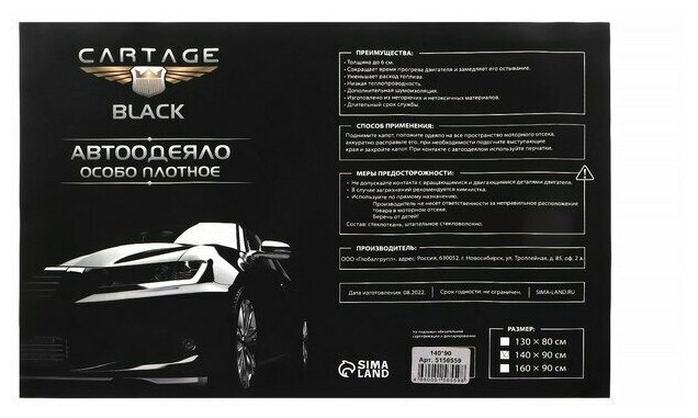 Автоодеяло для двигателя Cartage black, 140х90 см, плотное информация: