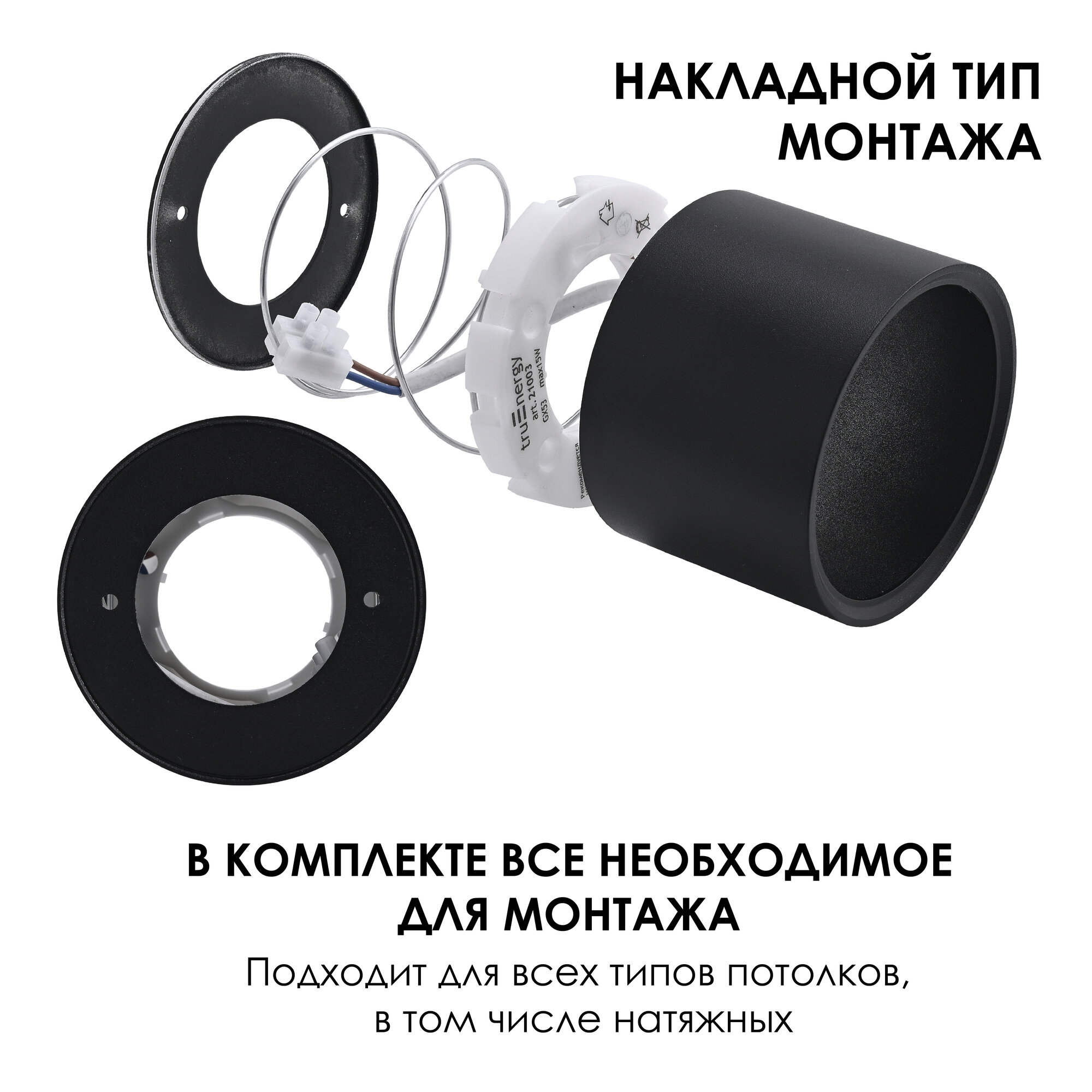 Накладной светильник truEnergy под лампу GX53 D82xH60мм IP20 черный/алюминий 21003 915 ₽