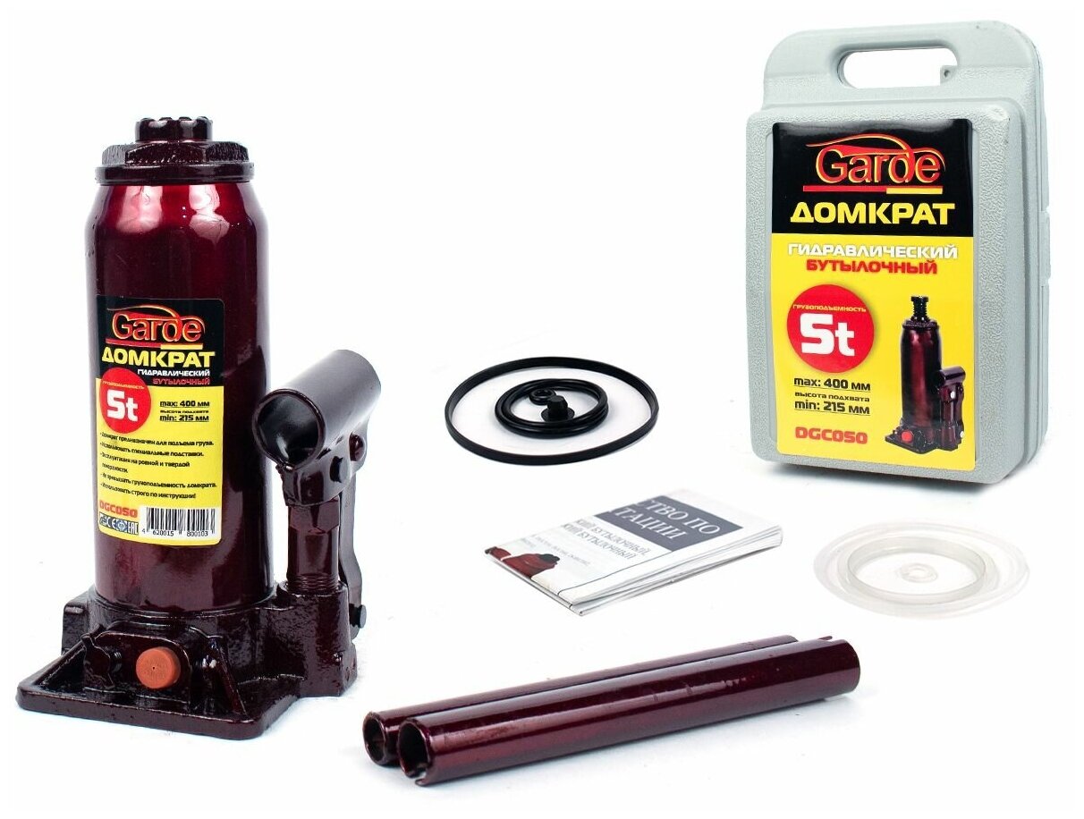домкрат гидравлический 5т garde бутылочный в кейсе 215-400мм dgc050 4 567 ₽