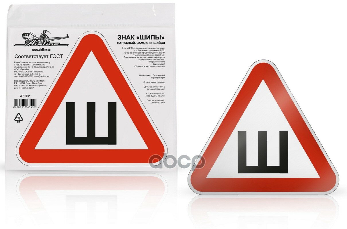 Знак Шипы Гост, Наружный, Самоклеящийся (200200 Мм), В Уп. 10 Шт. (Azn02) AIRLINE арт. AZN02 информация: